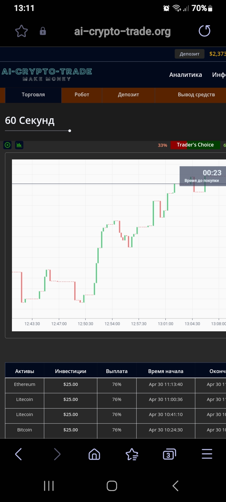 Вам предложат 3 дня за роботом трейдером присматривать потом будут возможно типа сбои с сайтом и ВПН вроде поможет, все это театр, потом снимут деньги на ваших глазах и кинут, предложат ключ типа ты сам инвестируй и заработай, вы внесете депозит и он потом испарится, мошенники низкие до омерзения. Выводы делать вам, когда обожжетесь