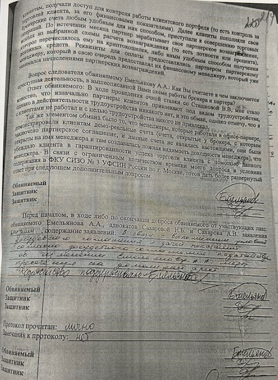 Не верьте никаким досудебным соглашениям — это схема такая. Никакой Александр Емельянов не является организатором лжеброкера — ему просто не дадут это сделать. Вам дапшит родное правоохранение. Я проходил эту историю и знаю, о чём пишу. В судах ругань стоит с прокуратурой и полицией — нарушают уголовно-процессуальный кодекс, как дышат. Ни одного оперативно-розыскного мероприятия по местам похищения денег не проводится, хотя ст. 176 УПК обязывает проводить осмотр места происшествия. Но вместо возбуждения уголовного дела, выносятся постановления об отказе в возбуждении уголовного дела (ПОВУД) по неустановленным лицам. ПОУВД по неустановленным лицам запрещено выносить по УПК — плевали полицейские и проверяющие прокуроры на нормы УПК.