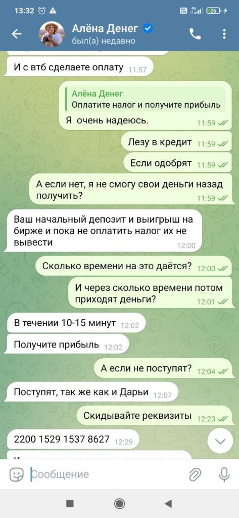 Я попалась на её развод. Перевела 12 тыспоздно нашла отзывы.