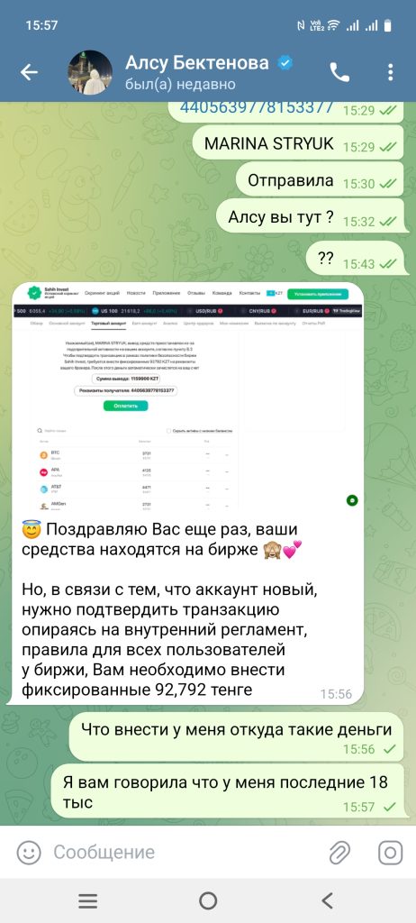 2) Алсу.бектенова.Кто.такая.можно.ей.поверит.она.денги.просит.на.активизац.чтобы.взят.денги.из.биржи.1.взнос.отправил.