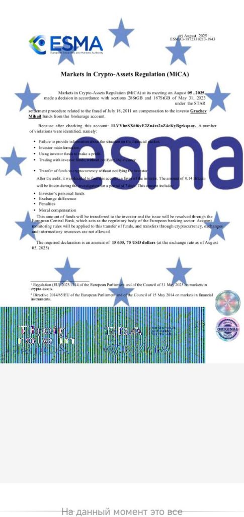 удостоверяет Вашу личность) на криптовалютном кошельке.
