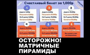 «Хотел спросить по поводу проекта «Дари Получай» [сюда вставьте любое название пирамиды, которая для заработка требует приведения определённого числа людей], обман или нет?» ОТВЕТ: По схеме это матричная пирамида, в которой зарабатывают только те, кому удаётся приглашать новых людей, то есть обманывать их, что они точно смогут заработать. Если на первых порах приглашать проще (поляна … Читать далее «Дари Получай»: почему это развод