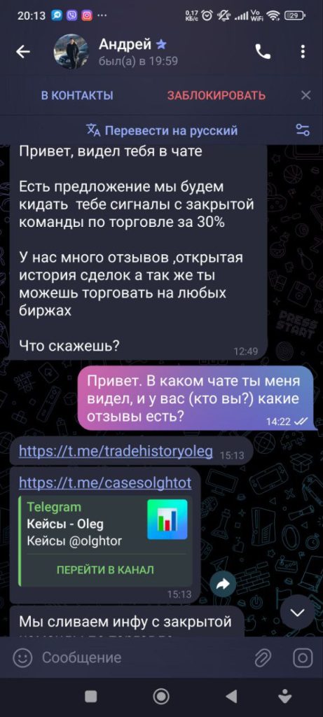 Есть предложение — мы будем кидать тебе сигналы с закрытой команды по торговле за 30%