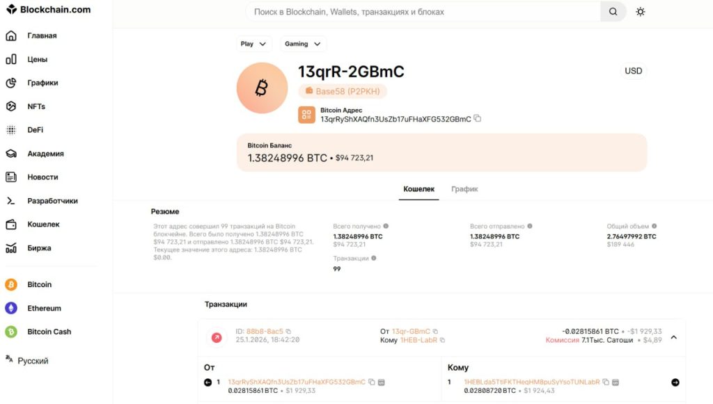 1. Адрес 13qrRyShXAQfn3UsZb17uFHaXFG532GBmC