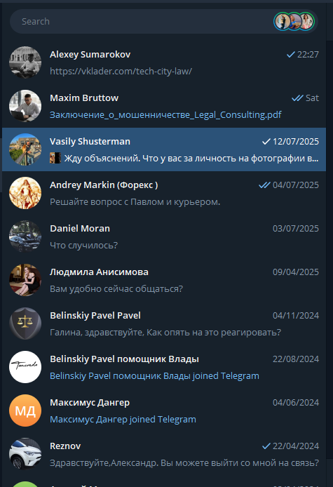 Часть из переписок были стерты в Телеграме (заметание следов), пользователи удалены.