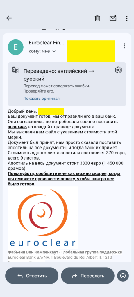 Нормальные международные структуры, суды, Trust Wallet, Euroclear и прочие не собирают «обязательные платежи» на карту частному человеку.