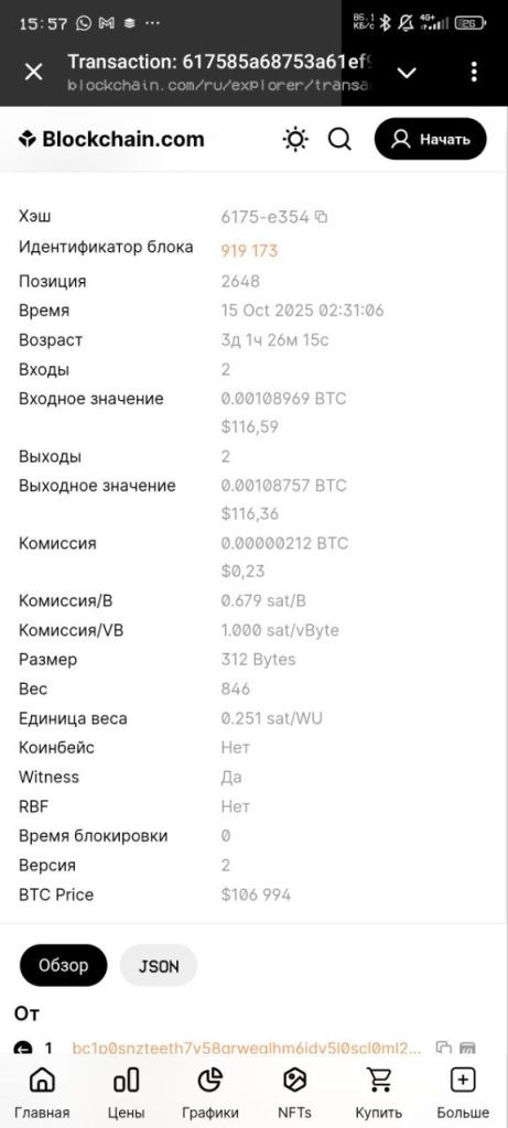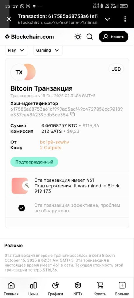По факту это просто чек о переводе 0.00108757 BTC (~$116) между двумя крипто-адресами, подтверждённый в блоке 919173. Такой чек не означает, что деньги принадлежат вам.