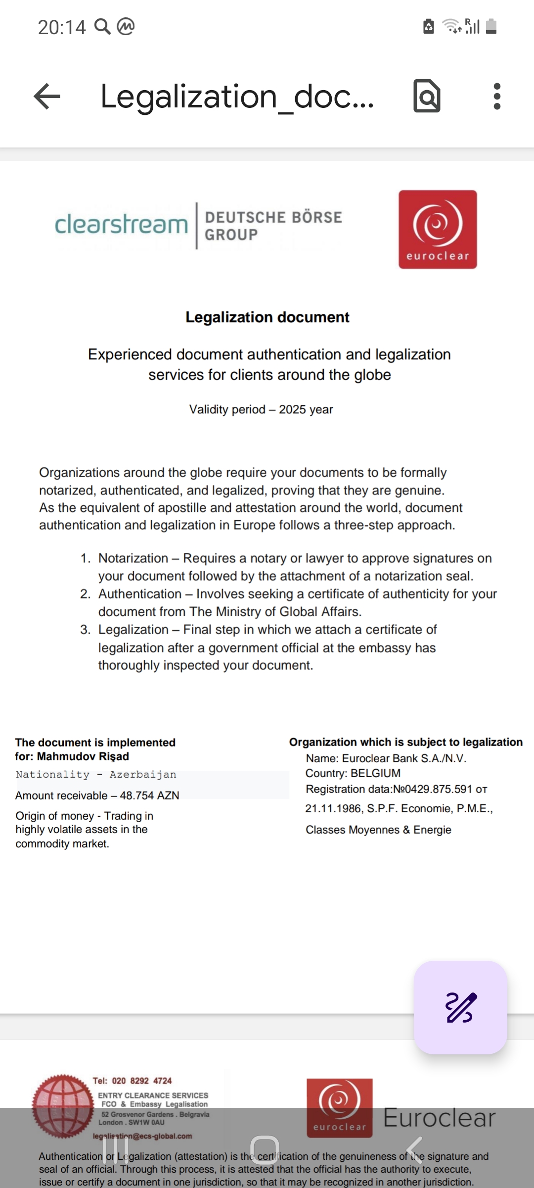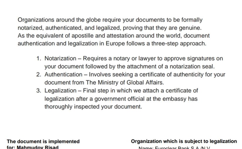 Этот документ — подделка низкого качества, которая используется в мошеннических целях (обычно связанных с «легализацией средств», обещанием выплат через Euroclear или Clearstream).