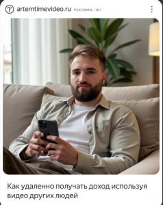 Теперь рекламируют сайт artemtimevideo.ru («Как удаленно получать доход используя видео других людей». Указаны реквизиты ИП МОСКАЛЮК АРТЕМ АЛЕКСАНДРОВИЧ, ИНН 503228741005, ID #110431035.