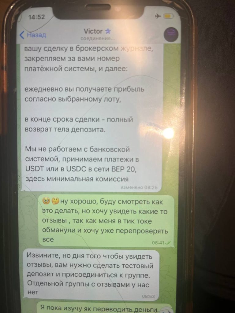 Теперь-то мне понятно, что это аферисты. Ну и я буду понимать, как это работает. Ну, просто очень хочется, чтобы люди не пострадали, и поэтому хочется прямо кричать на весь Telegram, чтобы не было подобных, потому что так профессионально работают.