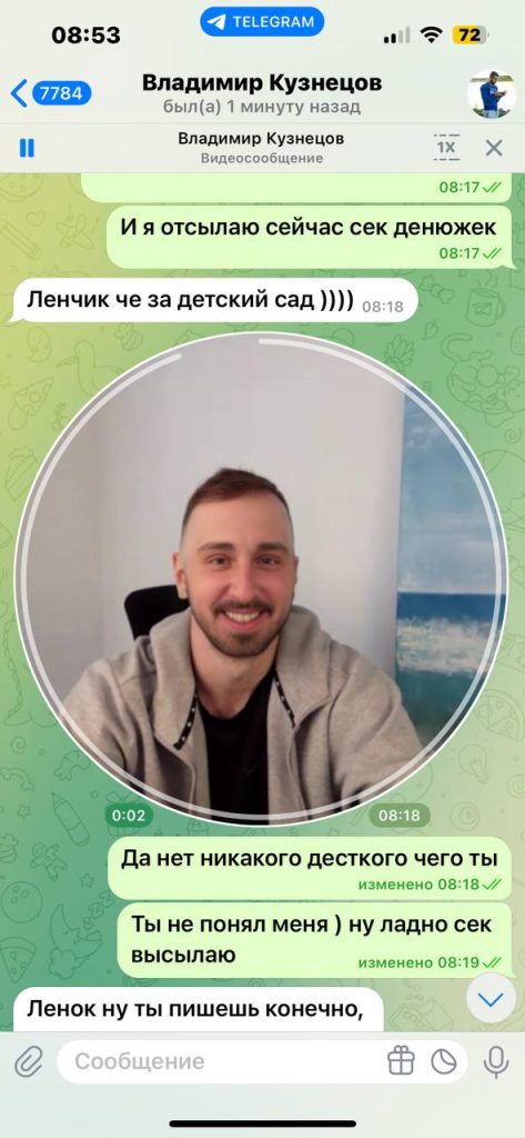 Это типа парень который меня ввел его зовут типа Владимир Кузнецов это в е что мне удалось зафиксировать на камеру , но теперь понимаю что и это может быть не он.