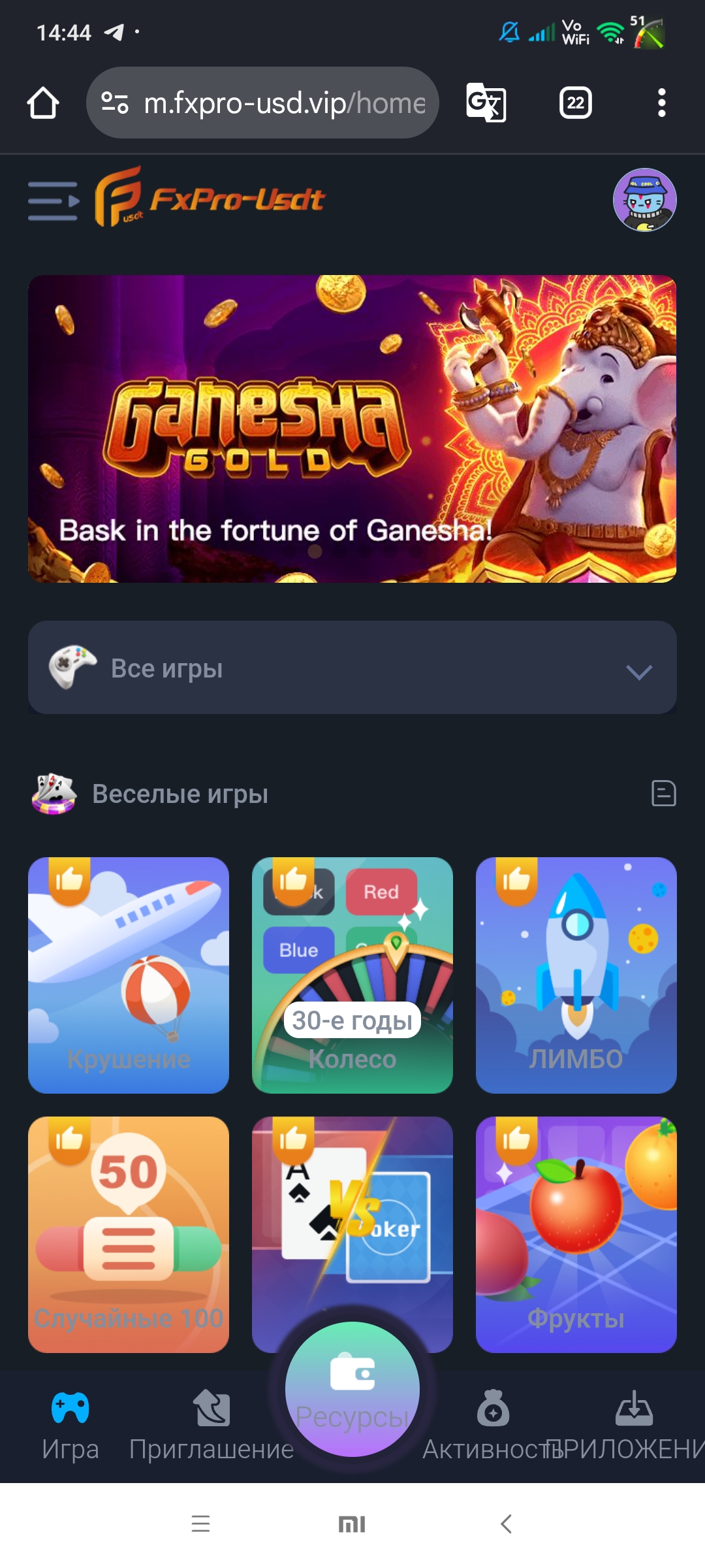 Сам сайт без включённого JS не показывает содержимое (типично для «конструкторов» фишинговых кабинетов). Побочные признаки: следы связанных доменов/инфры (m.fxpro-usd.vip) с размещением на азиатском хостинге и странными описаниями (“крипто-игровая платформа”).