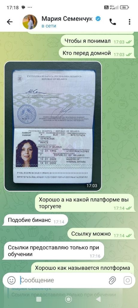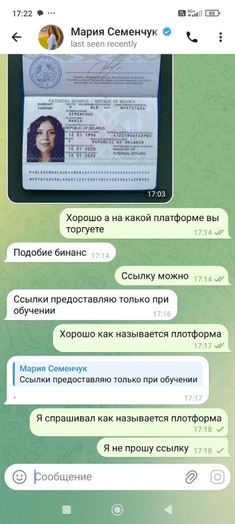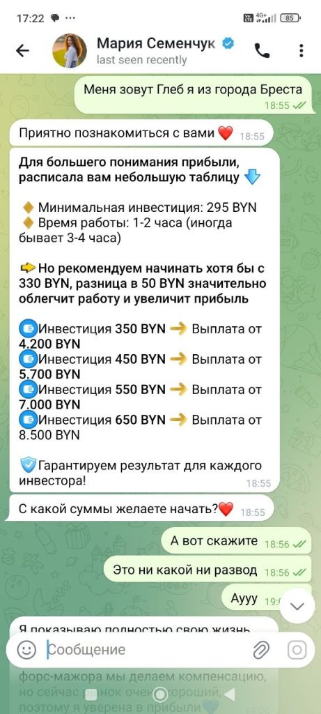 Представляется как «Мария Семенчук», @MariaSemenchukInvest