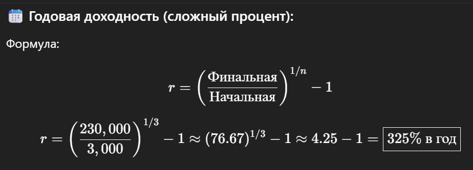 Дмитрий, [04.08.2025 17:15] 325% годовых на протяжении трех лет подряд — как говорит мой папа- «Свежо предание, а верится с трудом»