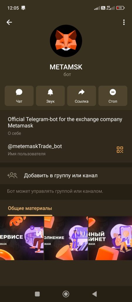 «Official Telegram-bot for the exchange company Metamask» — обман.