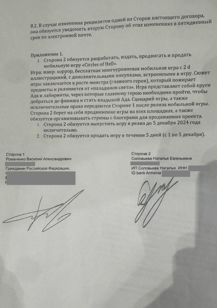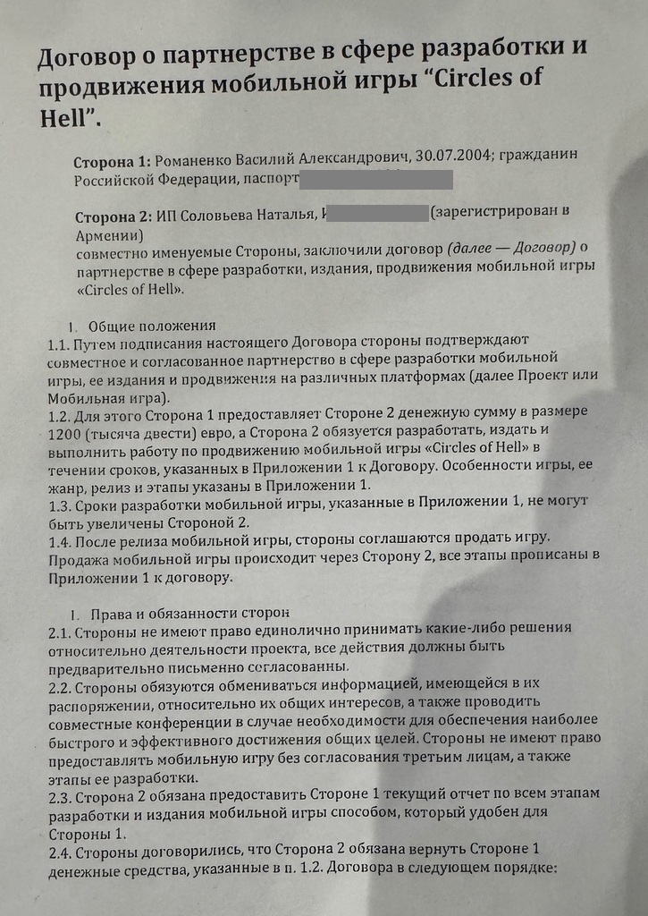 У нас был заключен договор на якобы создание игры и инвестиции туда с нашей стороны. Она обязалась выплатить деньги с процентом и пропала . Так же другие люди, с таким же договором выиграли суд по взысканию с нее средств, но она опять ничего не понесла никакого наказания. У нее про прочту нет имущества и суд не может ничего сделать.