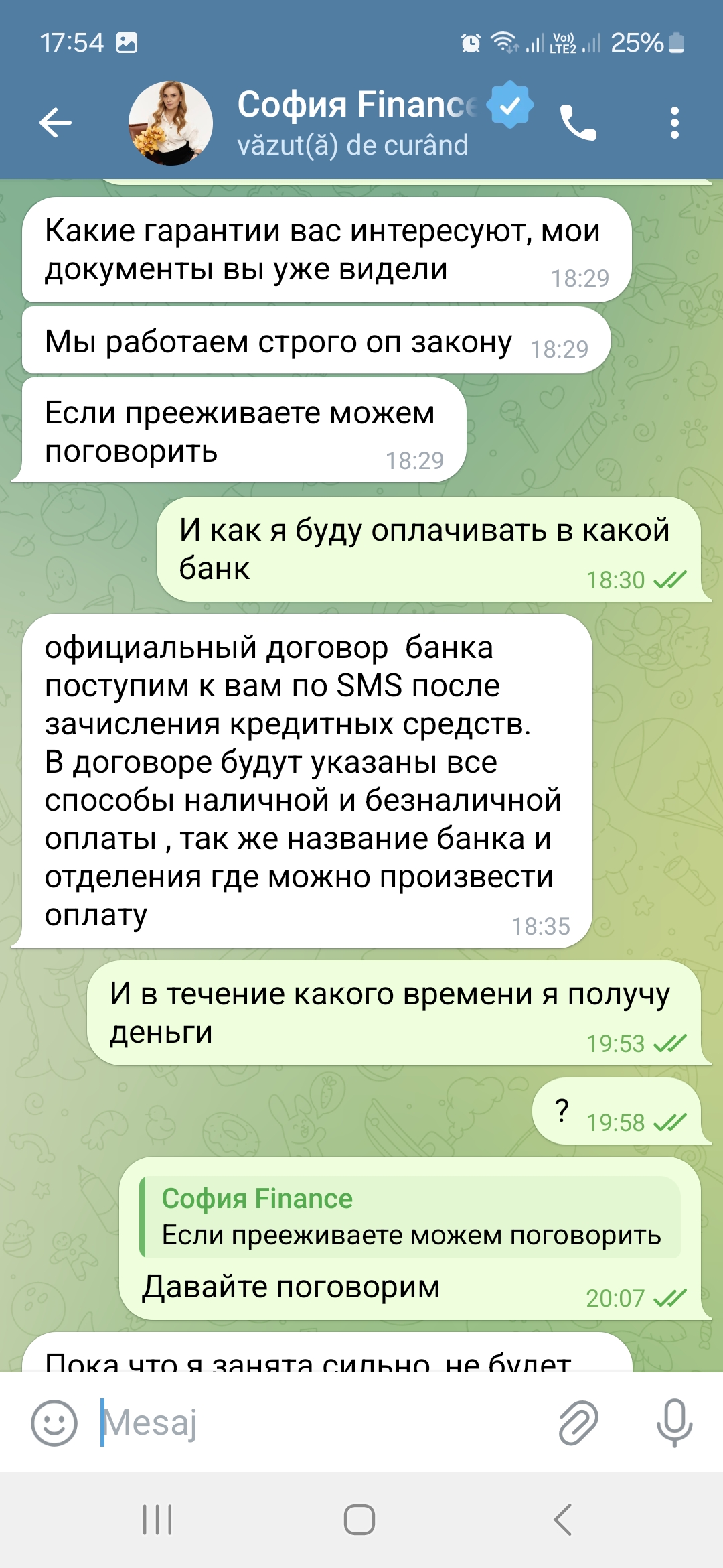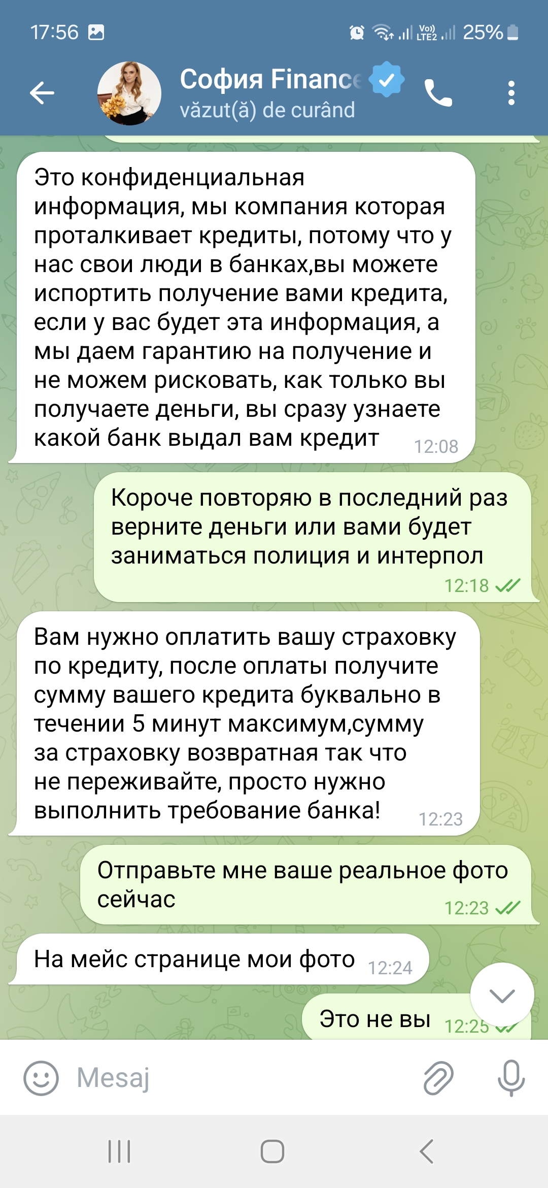 Меня тоже обманывали я ей отправил уже 600 евро и даже дала расписку о том что я получу 100% кредит и все требует денег