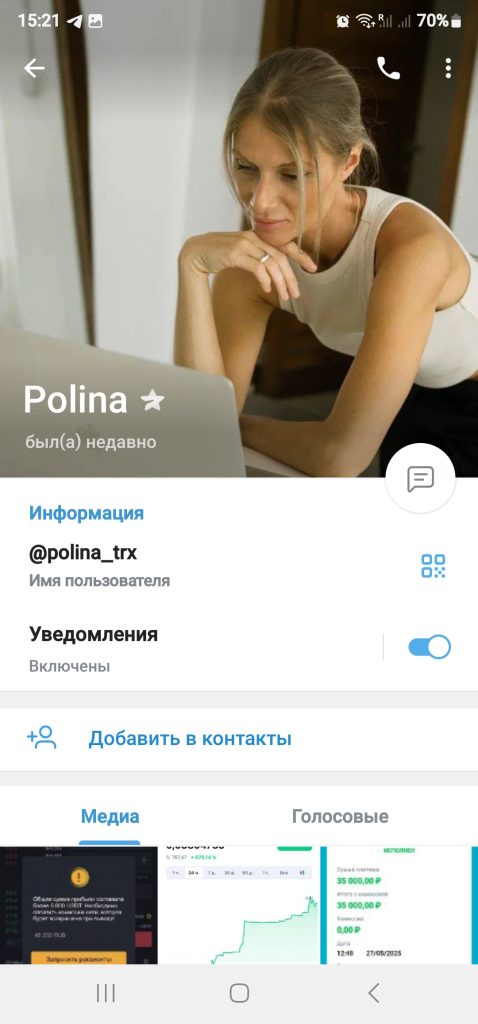 Полина «Активный доход» (@polina_trx) — мошенники чистой воды. Жалко что попала на 35 тыс. Может другие будут умнее.