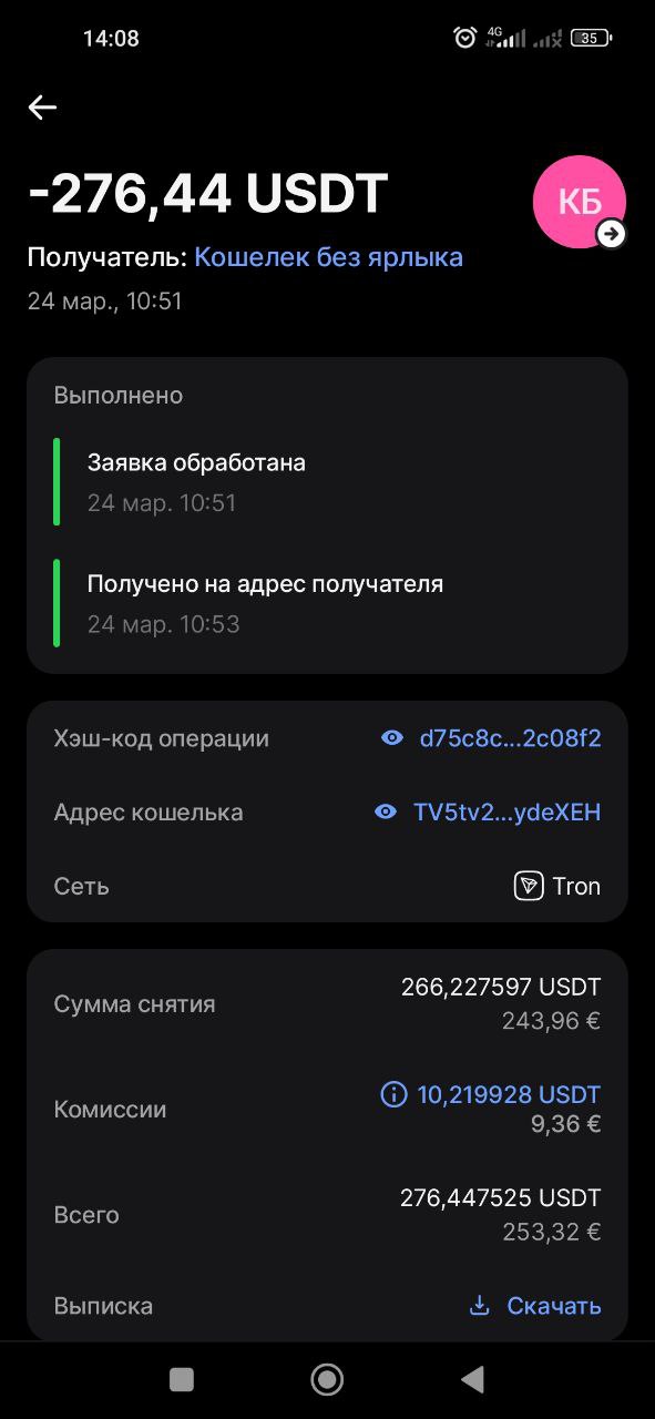 Я перевёл сначала 500 €, потом ещё — якобы за вывод средств. Но как только речь зашла о возврате денег — все пропали. Ни ответа, ни поддержки. Мошенники.