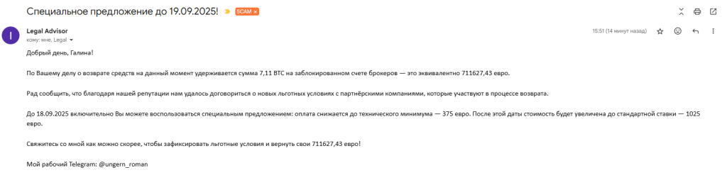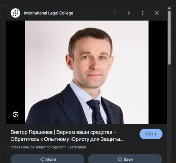 Ранее это лицо использовали мошенники INTERNATIONAL LEGAL COLLEGE (якобы Дубай).