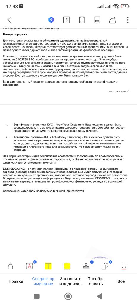 Если ты уже занёс туда деньги — лучше думать, как их спасать (банк, чарджбэк и т.д.), а не верить таким бумажкам. Если ещё не занёс — просто не связываться. Если хочешь, могу помочь с шагами по возврату или проверкой нормальных, лицензированных брокеров.