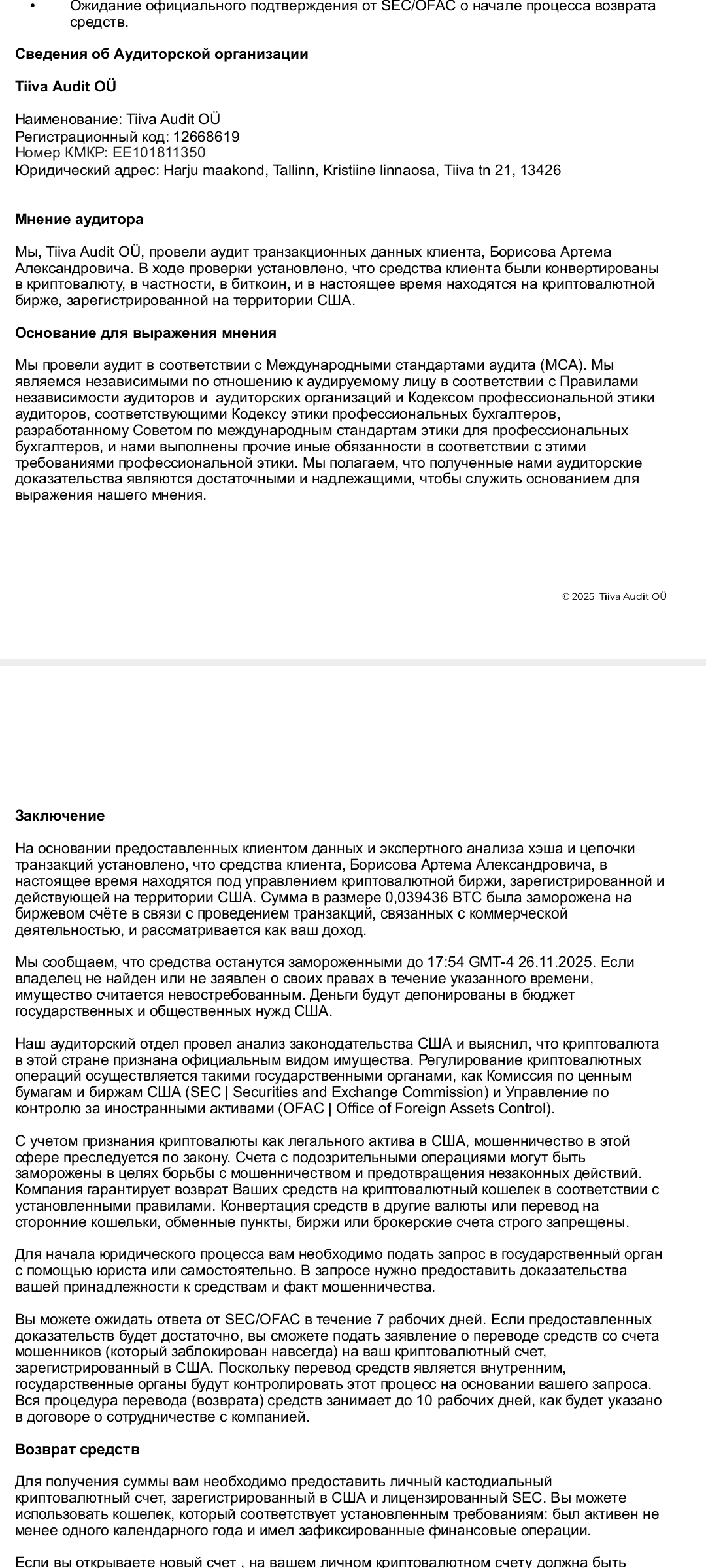 3) Компания www.Finra.org предлагает вывод денег за оплату после поступления денег на криптокошелек с заключением договора. Сказали, что они канадский филиал. Сообщили, что кошелки моего лжеброкера рttps://libertybridgesolution.com/ арестованы и что лжеброкер торговал на счету созданному по моим документам на blockchain.com и указывают мой баланс на платформе.