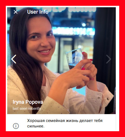 Вам пишет незнакомая девушка, в данном случае Ирина Попова (Iryna Popova):
