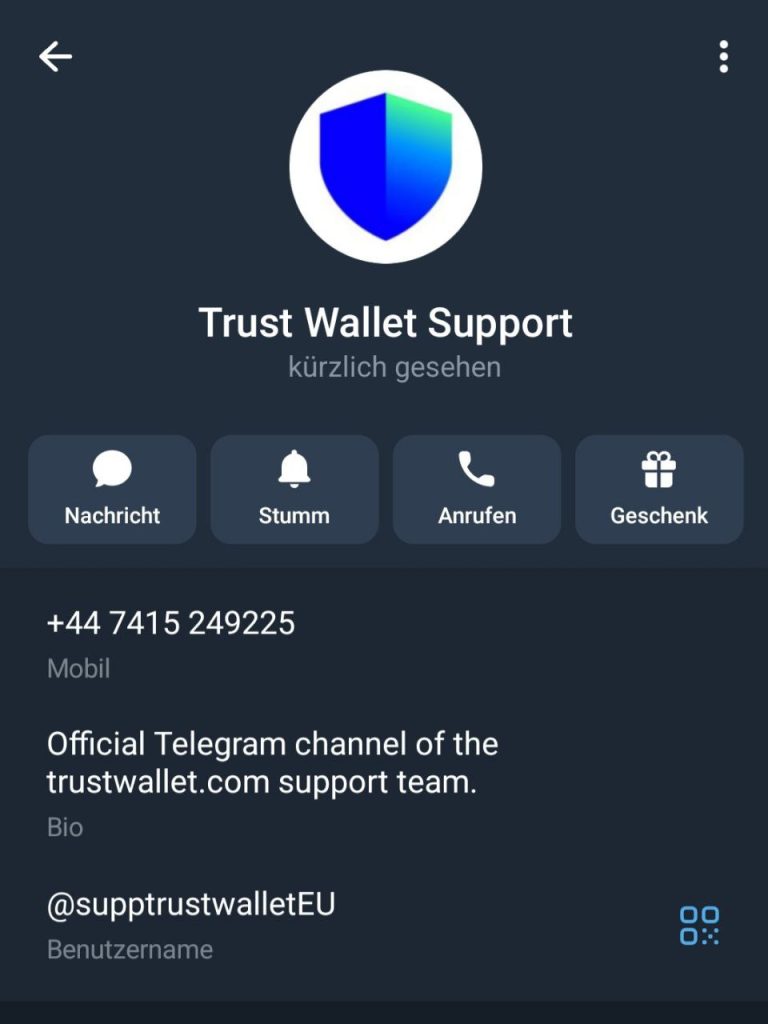 @supptrustwalleEU — фальшивая поддержка, как, возможно, и кошелёк.