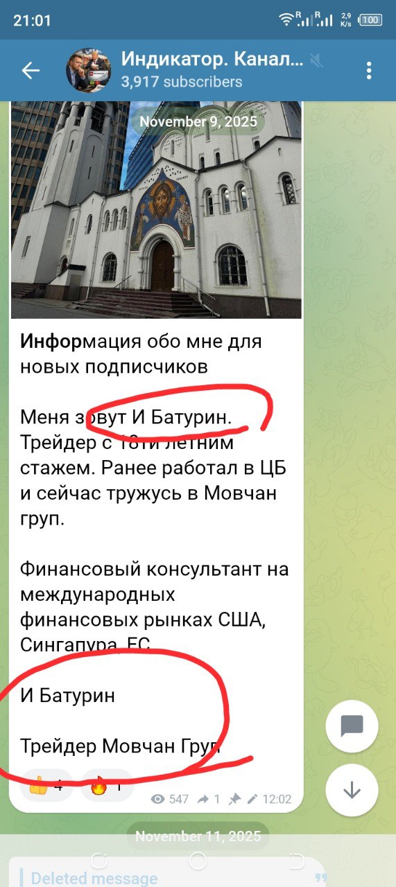 Теперь канал называется «Индикатор Батурина — трейдер Мовчан груп», адрес канала изменился на @BaturinTrade, контакт админа изменился на @traderbaturin. Также жулик изменил аватарку и подтёр часть старых постов, впрочем, не все, и во многих старых публикациях на его канале Батурин теперь мирно соседствует с Бутурлиным.