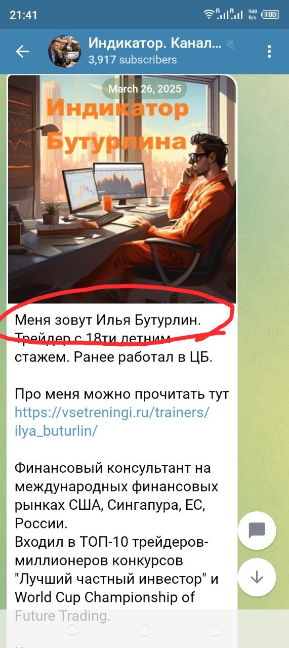 После очередного разоблачения мошенник снова переименовал канал и себя самого. Теперь скам-проект называется «Индикатор Бутурлина. Канал о финансах и трейдинге.», адрес канала изменился на @ButurlinIndicator, контакт админа изменился на @traderbuturlin (И Бутурлин).