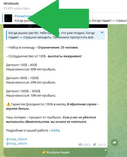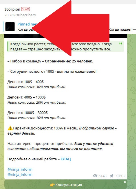 Метка Scam появилась под одним из каналов опасной группы мошенников, которая завлекает людей через десятки фальшивых отзовиков с «проверенными инвестициями».