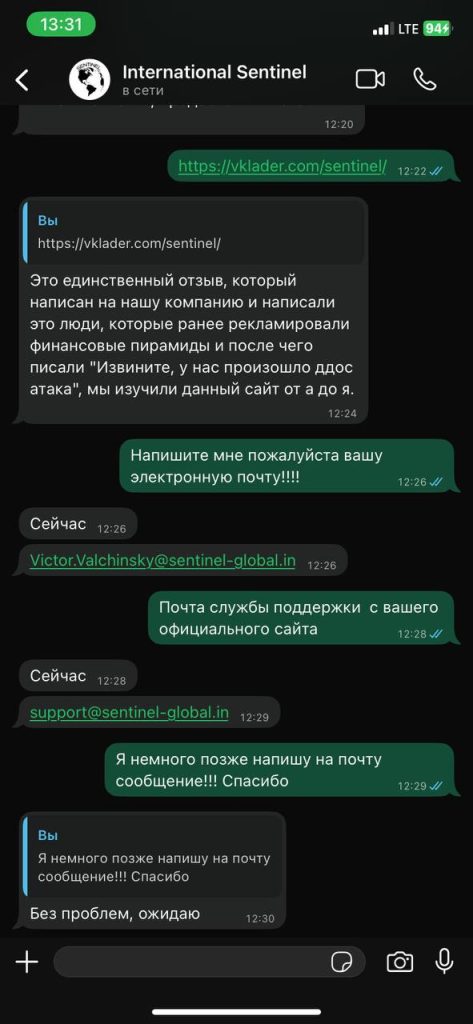 1) Можно ли вновь побеспокоить вас по вопросу проверки компании Sentinel International ?