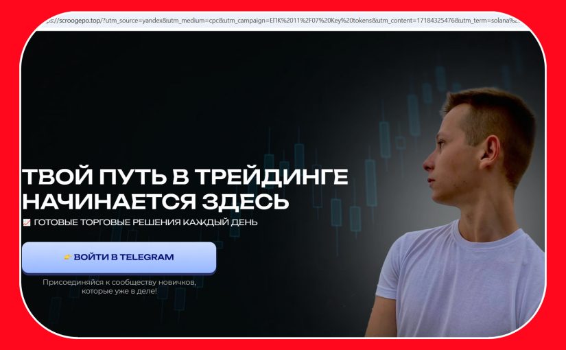 Далее идет переход на croogepo.top, там фото какого-то полуподростка и ссылка на канал Скрудж и Опционы | Pocket Option (t.me/+4guu51LvwvsyYTcy).