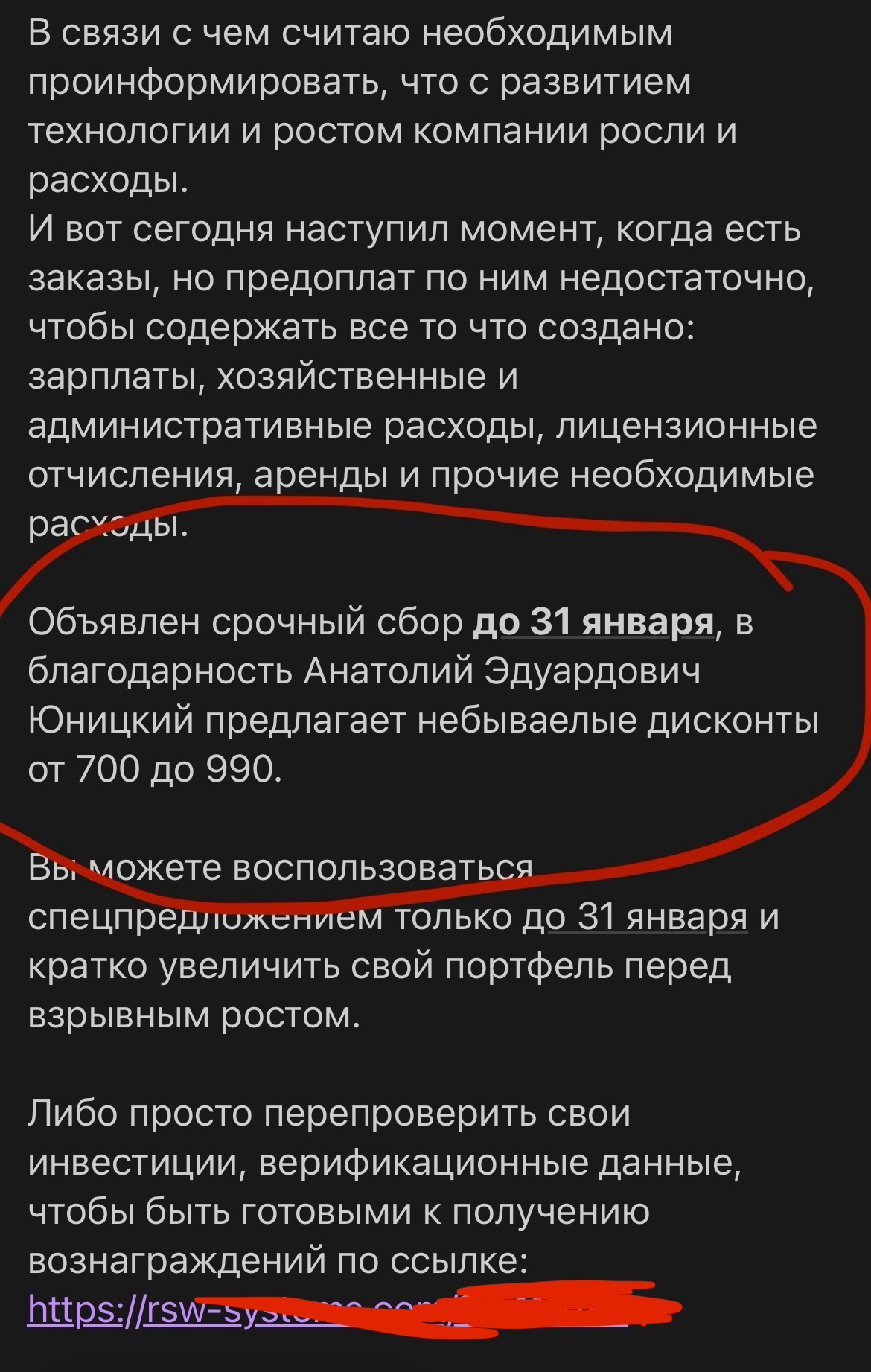 Объявлен срочный сбор до 31 января, в благодарность Анатолий Эдуардович Юницкий предлагает небываелые дисконты от 700 до 990.
