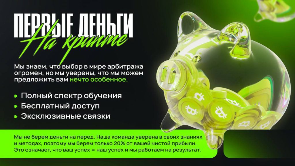 Реклама бота «Первые деньги на крипте». Предалагают связки, обычно это развод.