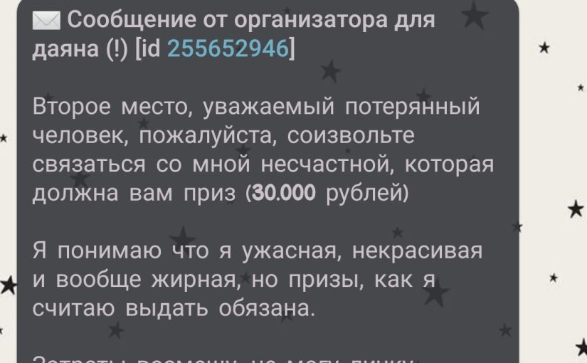 — Нет комментариев в канале, нет списка победителей (хоть обещает), всем рассылает «2-е место» массово.