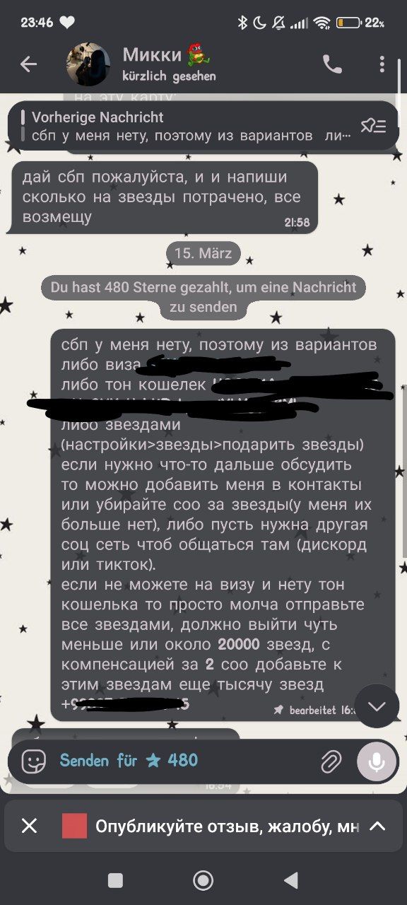 — Пишет коротко, игнорит просьбы снизить цену/добавить в контакты/дать другую соцсеть, требует больше звёзд.