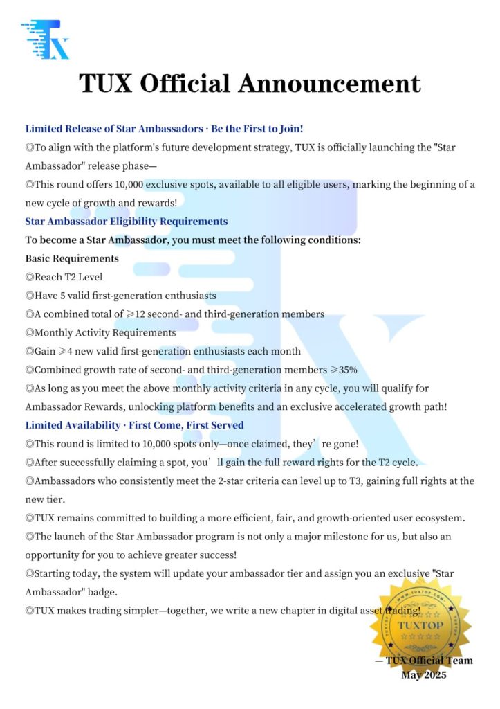 Что думаете про TUX Official Announcement Limited Release of Star Ambassadors – Act Fast!?