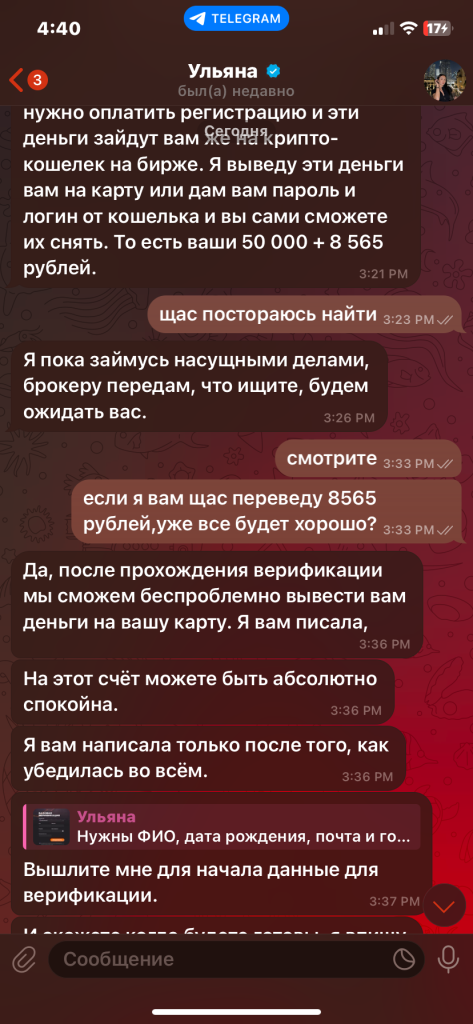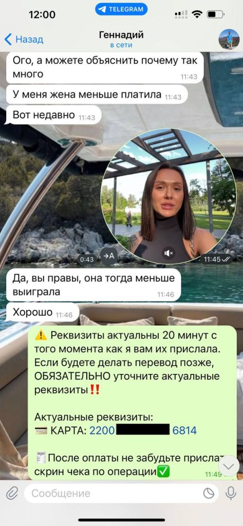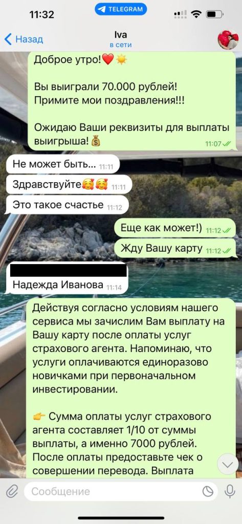 Я тоже повелась на это отдала 7,но потом остановилась ,сказала ,что больше оплачивать ничего не буду,и меня заблокировали,хотя она скидывала свои паспортные данные. Но я так поняла,что эта была не девушка ,а отвечал мужчина. Люди неведитесь ,кругом обман. Вся переписка сохранена.