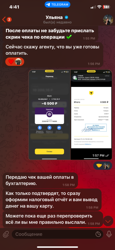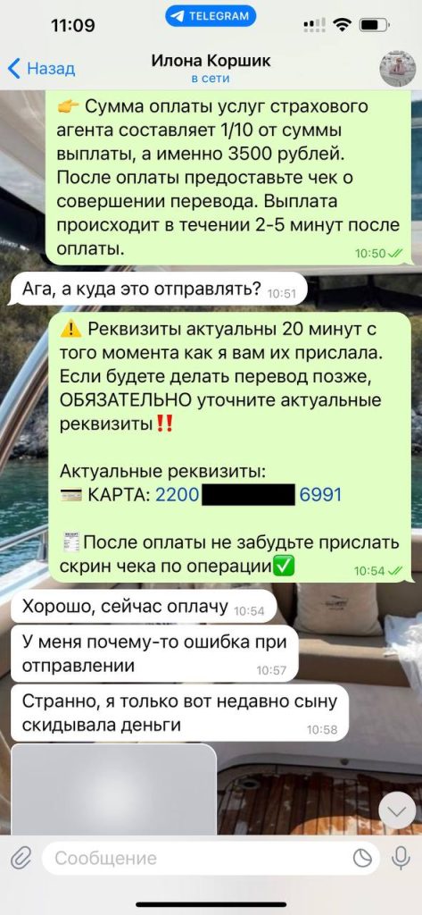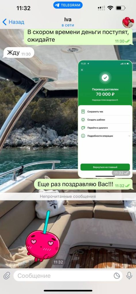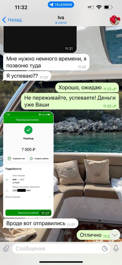 как и все я скинул ей 500 рублей на карту,и потом пошло поехало,5000,6500,а потом захотела развести на 8656 рублей,ни в коем случае не скидывайте ей деньги,будьте бдительны.Обманули на 11500 рублей