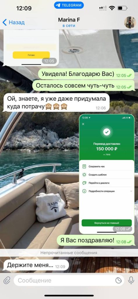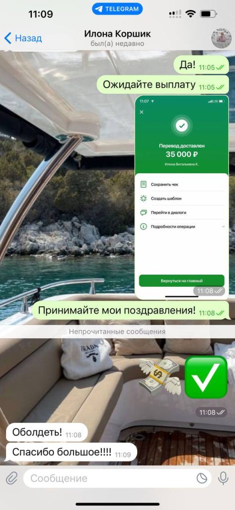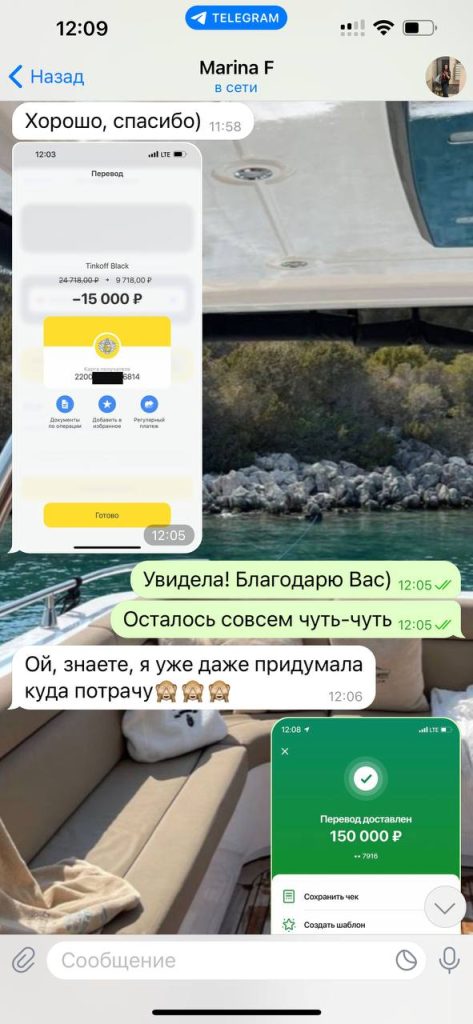 Перейдя на канал, я следила за ней несколько дней, перед тем как рискнула написать ей и начала сотрудничать! Всего за несколько месяцев работы смогла закрыть отцу ипотеку и купить ему новенькую машину. А главное, что работе я уделяю не более 1 часа в день сидя на диване! Рекомендую всем работать с Ульяной в команде!»