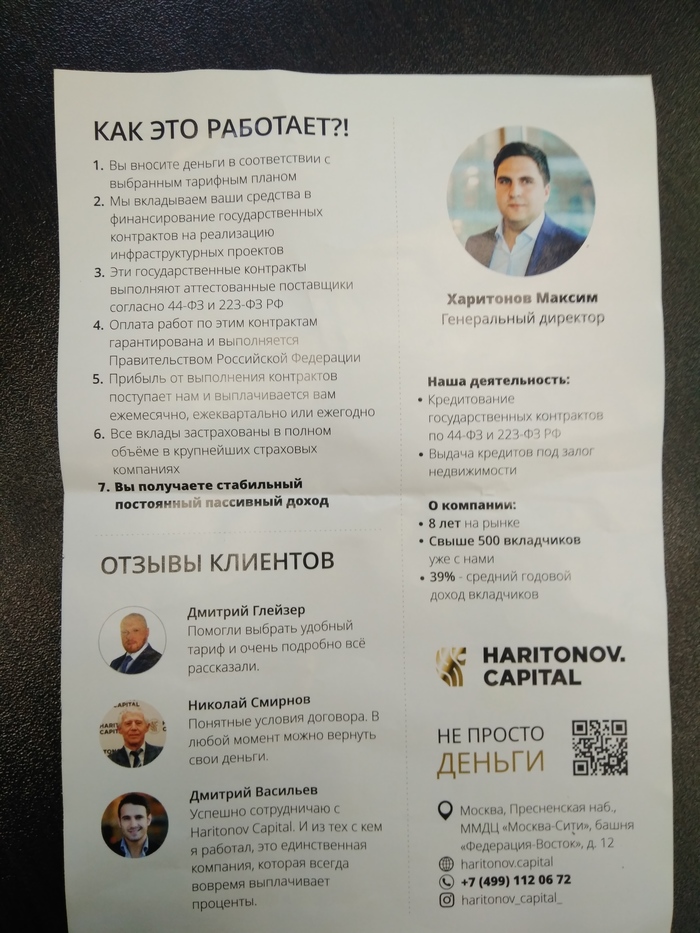 Я работаю в магазине «Верный», могу на 100% заявить, что из персонала магазина (работник зала — старшая смены — директор) никто ничего не знал. Пришёл приказ надеть значки и раздавать листовки. На следующий день сказали в срочном порядке всё снять, полить бензином и сжечь. Такое ощущение, что это были проделки людей из офиса, которые, не зная репутации (или зная?), сотрудничали с этой Haritonov Capital. В любом случае, сейчас ни листовок, ни значков, ни указов никаких нет. Мне стыдно за этот инцидент. Работаешь в поте лица, привлекаешь покупателей, зарабатываешь репутацию магазину, да такую, чтоб на улице за руку здоровались, а тут офисный планктон такую дрянь вытворяет. Ну вот и как так то, а?