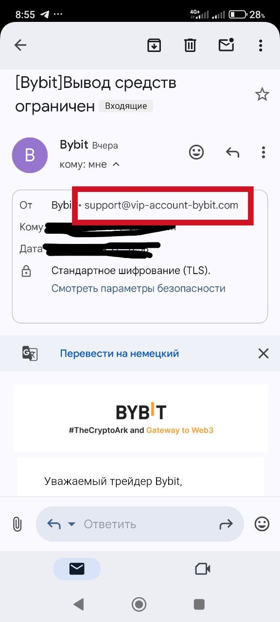 Не ведитесь! В телеграме ThriveLagoon, AscendProfit, Kynox, AlphaEdge, Ziflo, Aulon, cryptos_inspect, Trendify и т.п. тоже потерял много у них, они высылают фишинговую почту якобы от байбита, на самом деле почта не имеет никакое отношение с bybit. Они используют почту от «…@vip-account-bybit.com», а этот адрес не принадлежит байбиту.
